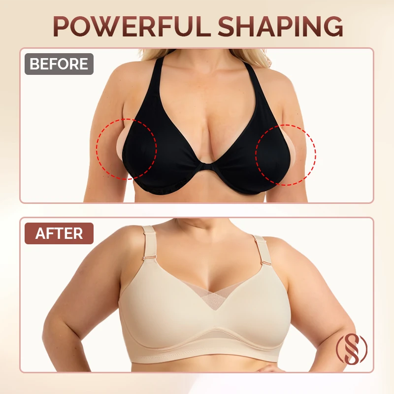 "As a nurse on my feet all day, this soft bra keeps me comfortable and supported without any pain. The smooth lines and breathable power mesh make it perfect for long shifts. Truly a game changer!" (Linda M, 50, Houston, TX)